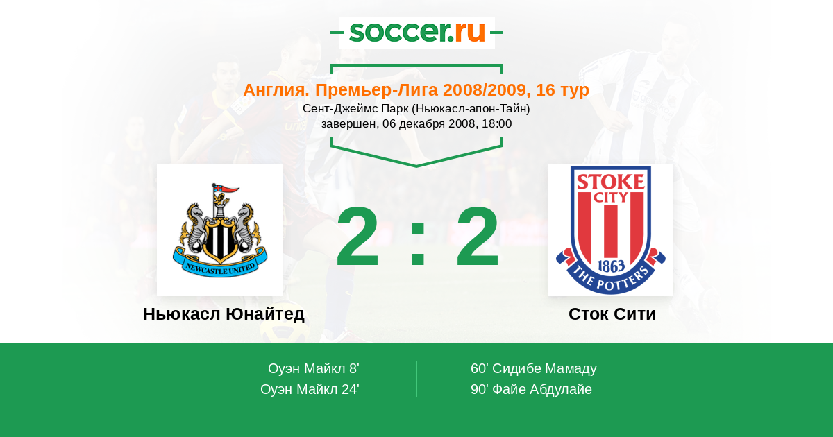 Протокол матча Ньюкасл Юнайтед против Сток Сити