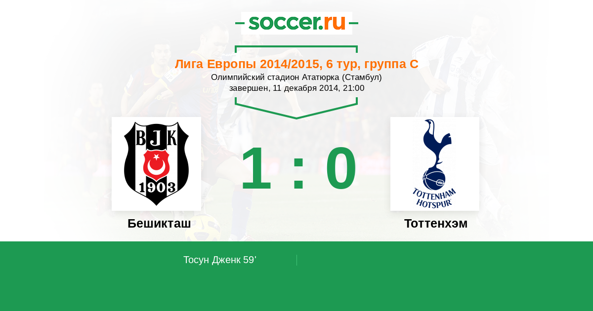 Протокол матча Бешикташ против Тоттенхэм