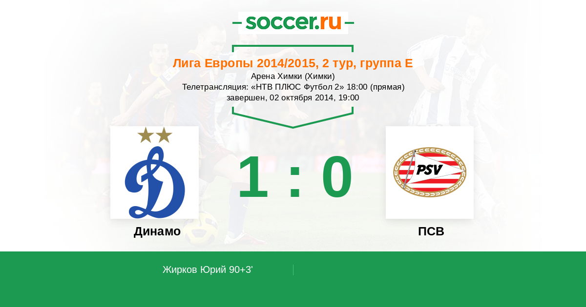 Протокол матча Динамо против ПСВ