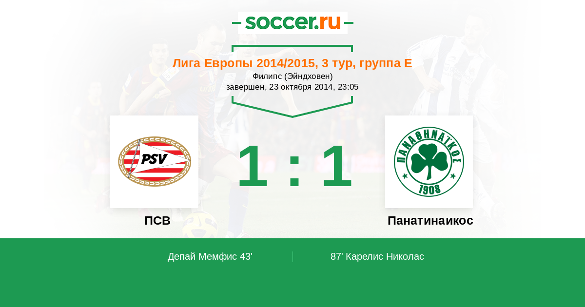 Протокол матча ПСВ против Панатинаикос