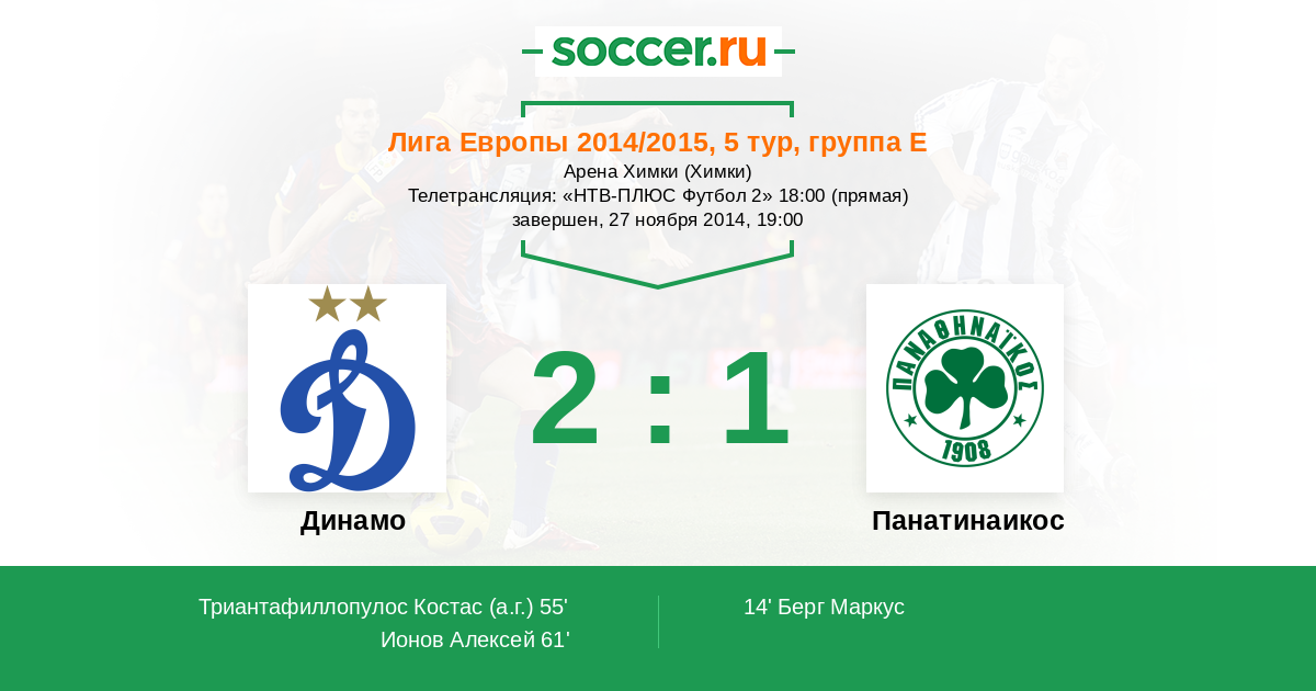 Протокол матча Динамо против Панатинаикос