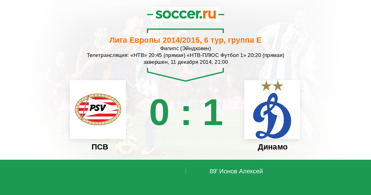 Протокол матча ПСВ против Динамо