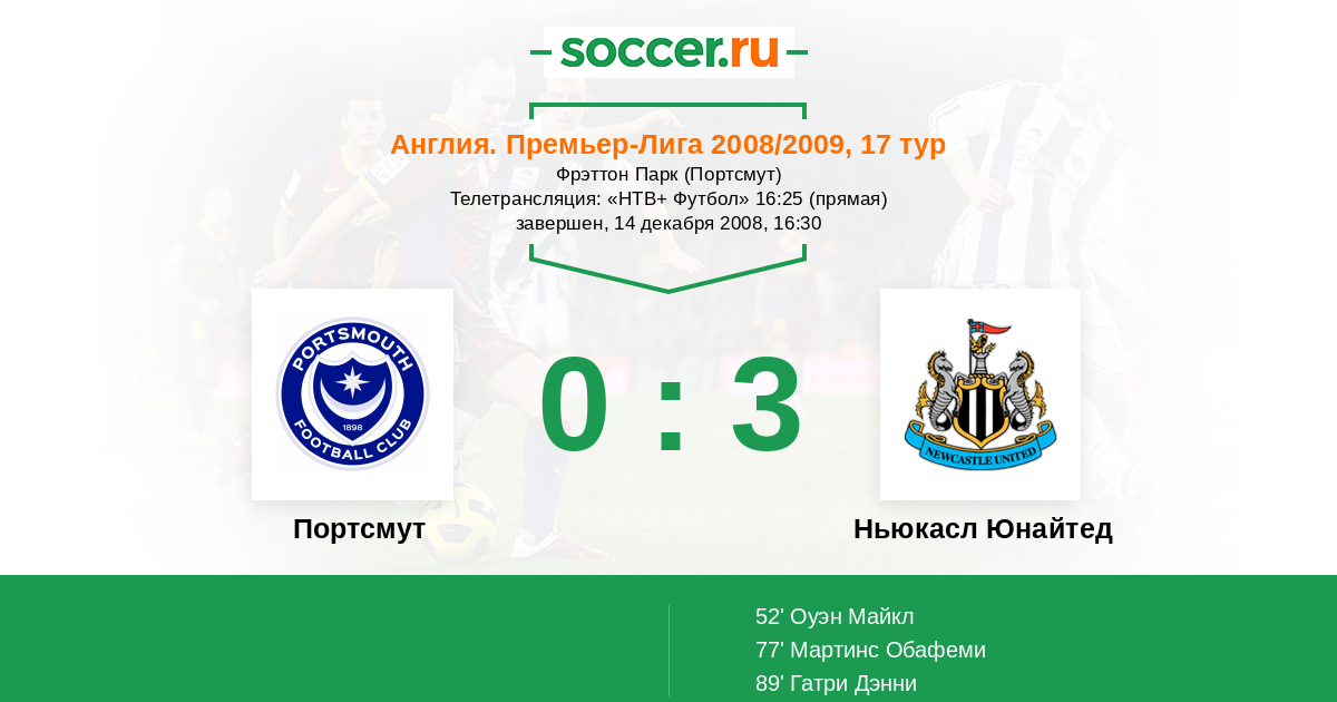 Протокол матча Портсмут против Ньюкасл Юнайтед