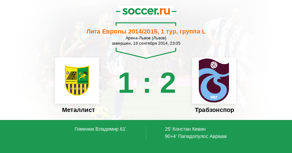 Протокол матча Металлист против Трабзонспор