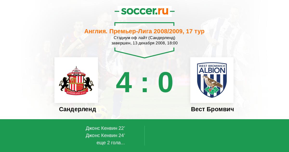 Протокол матча Сандерленд против Вест Бромвич
