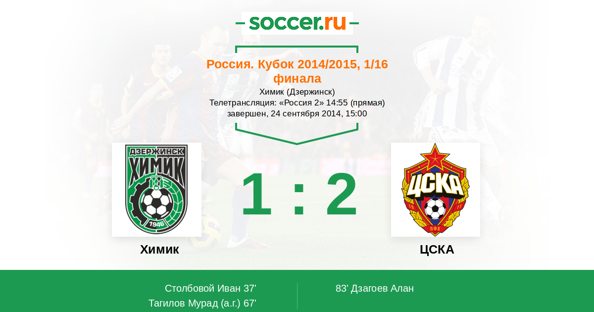 Протокол матча Химик против ЦСКА