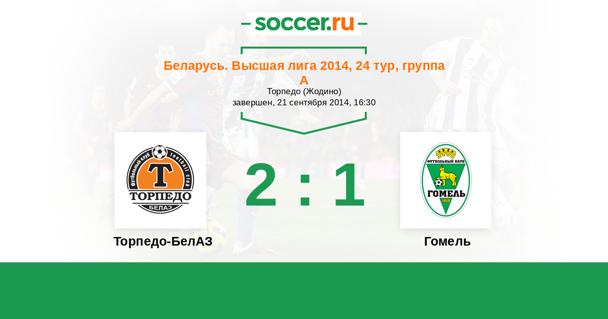 Беларусь. Высшая лига 06.06.2014 Гомель Логотип футбольный клуб Гомель 0:0 Логотип футбольный клуб Торпедо-БелАЗ (Жодино) Торпедо-БелАЗ