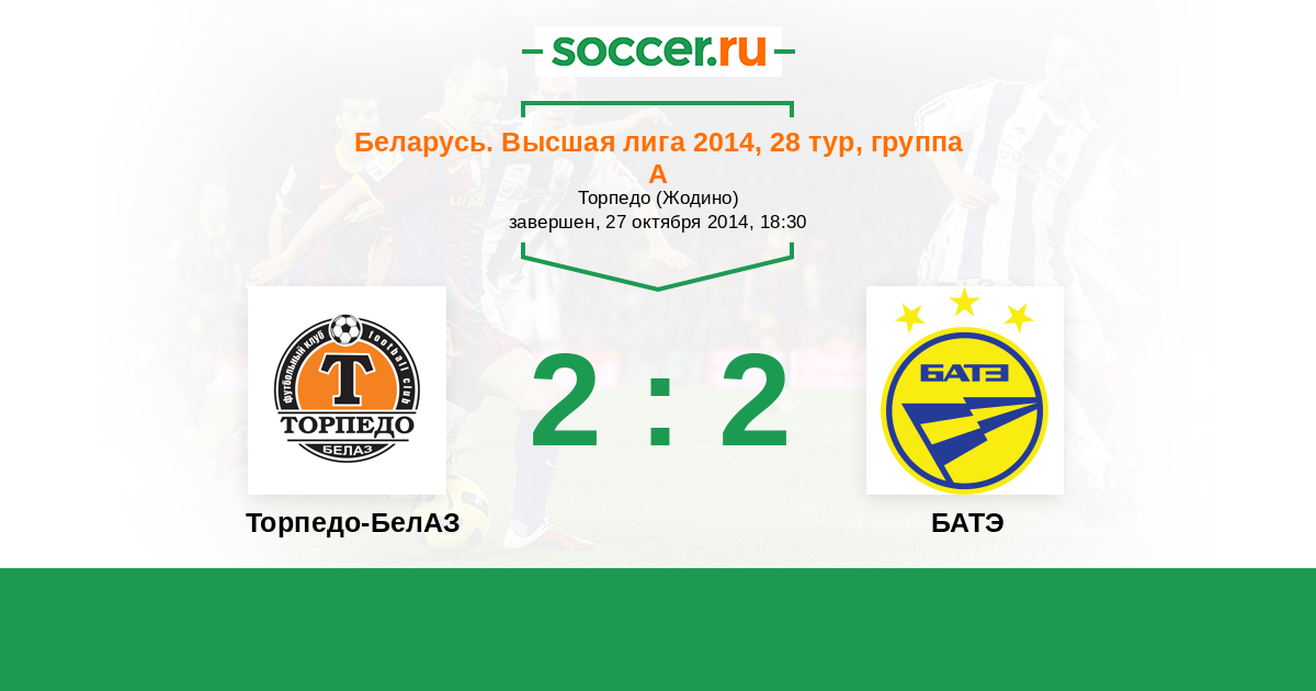 Беларусь. Высшая лига 13.09.2014 БАТЭ Логотип футбольный клуб БАТЭ (Борисов) 1:1 Логотип футбольный клуб Торпедо-БелАЗ (Жодино) Торпедо-БелАЗ