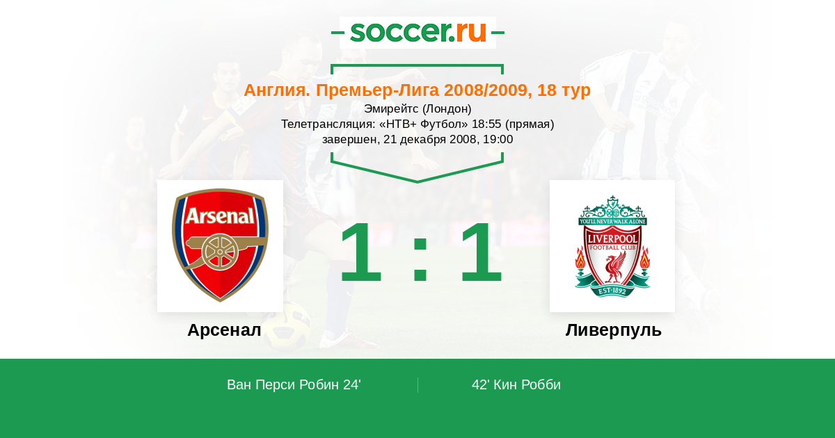 Протокол матча Арсенал против Ливерпуль