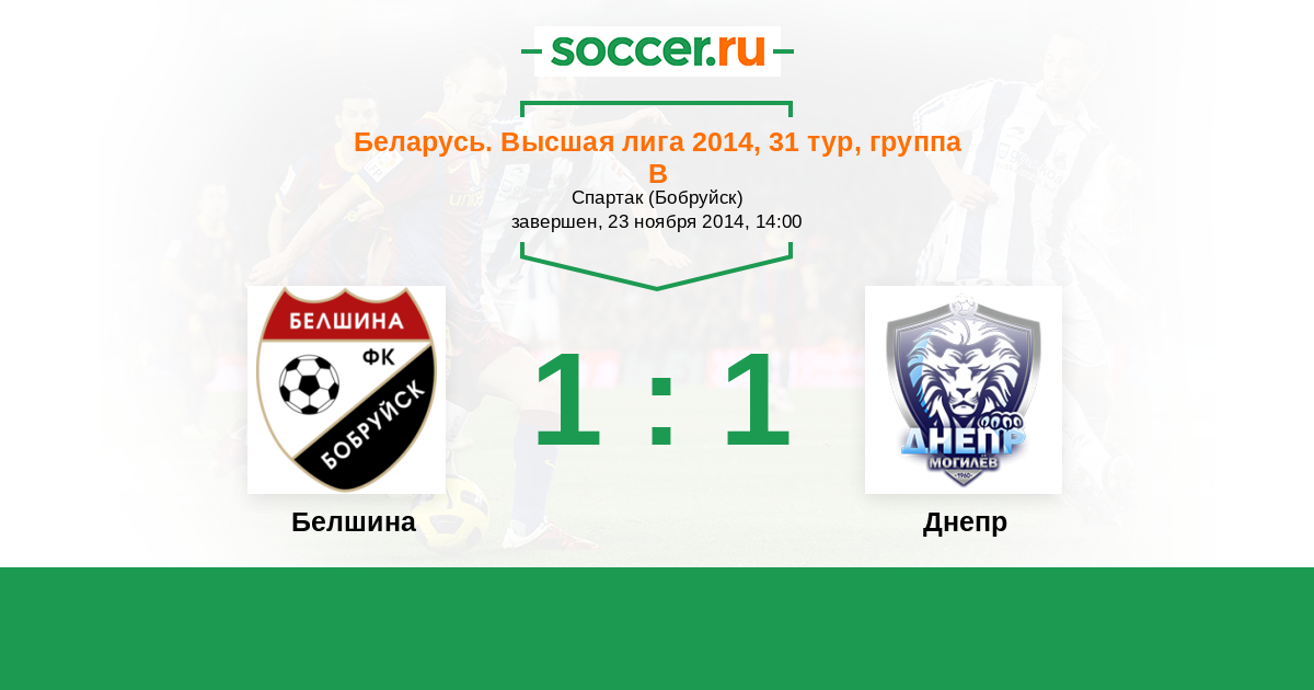 Беларусь. Высшая лига 05.10.2014 Днепр Логотип футбольный клуб Днепр (Могилев) 1:2 Логотип футбольный клуб Белшина (Бобруйск) Белшина