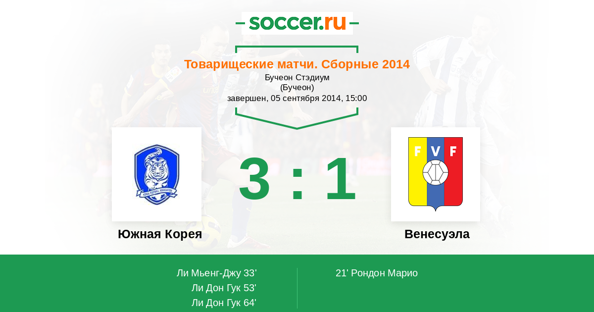 Протокол матча Южная Корея против Венесуэла