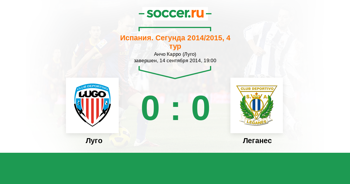 Испания. Сегунда 19.09.2015 Леганес Логотип футбольный клуб Леганес 0:0 Логотип футбольный клуб Луго Луго