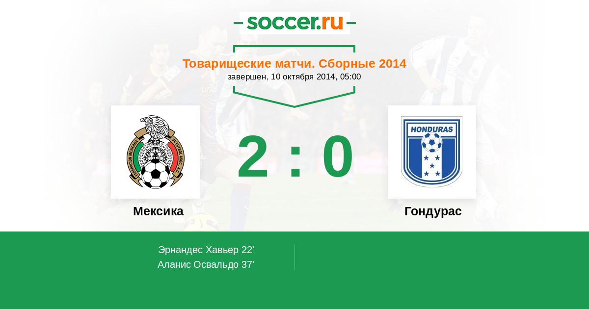22' (1:0) Эрнандес Хавьер (14) (Перальта Орибе (19))