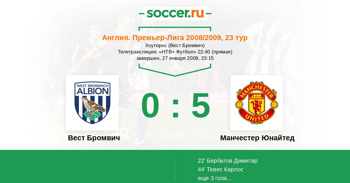 Протокол матча Вест Бромвич против Манчестер Юнайтед