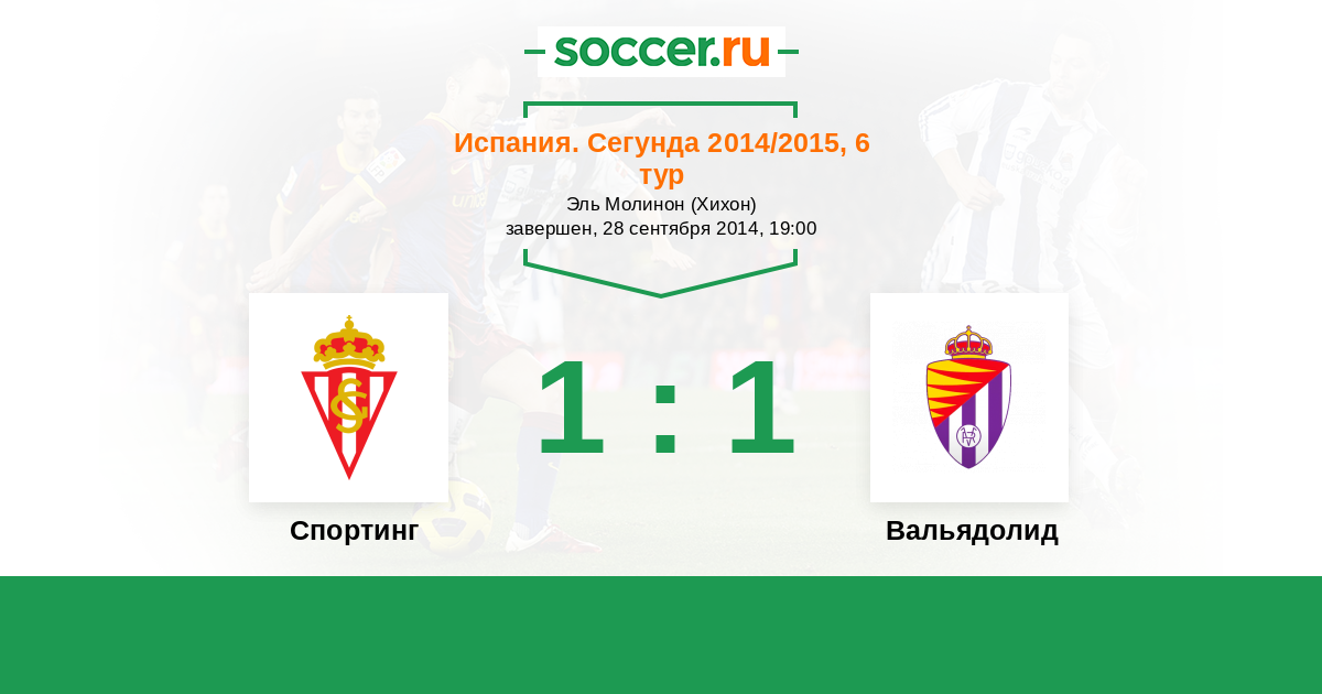 Испания. Кубок 10.09.2014 Спортинг Логотип футбольный клуб Спортинг (Хихон) 1:3 Логотип футбольный клуб Вальядолид Вальядолид