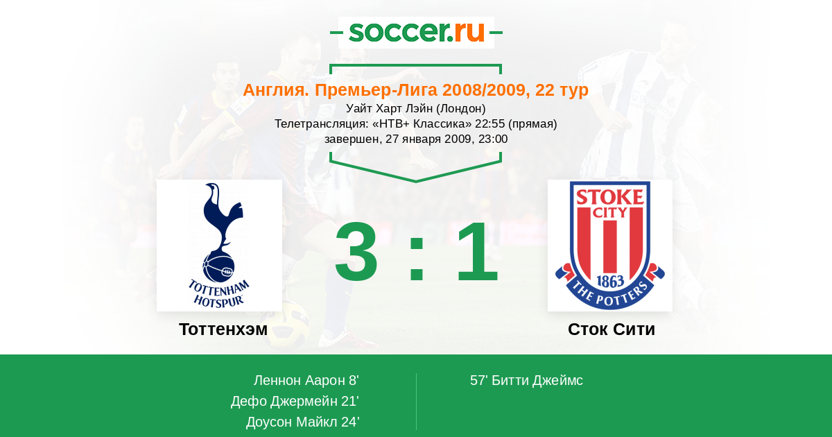 Протокол матча Тоттенхэм против Сток Сити