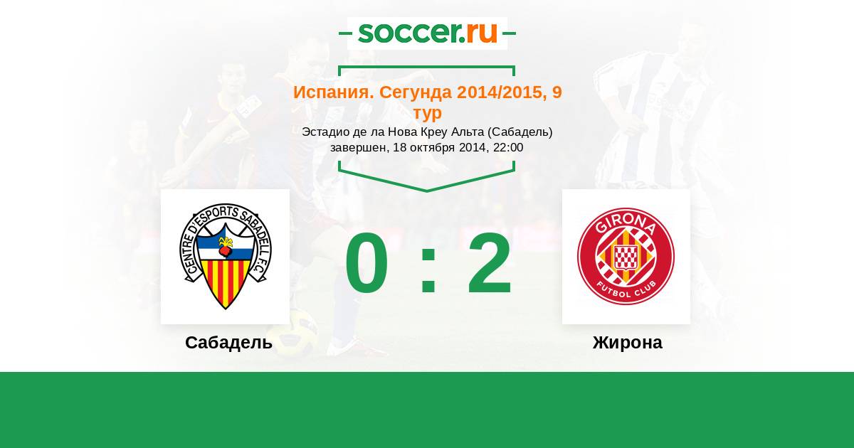 Испания. Сегунда 06.10.2013 Жирона Логотип футбольный клуб Жирона 1:1 Логотип футбольный клуб Сабадель Сабадель