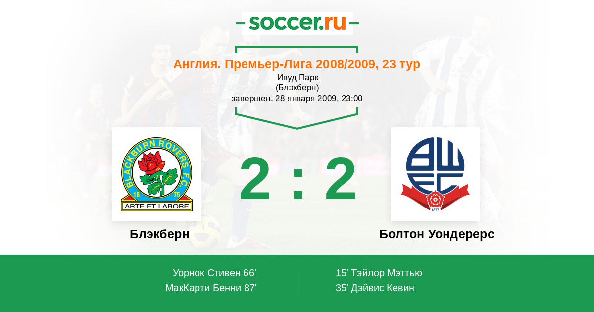Протокол матча Блэкберн против Болтон Уондерерс