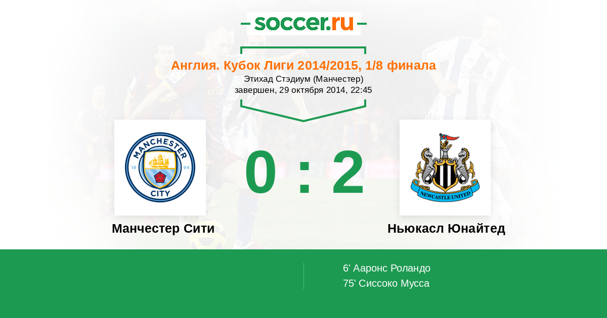 Протокол матча Манчестер Сити против Ньюкасл Юнайтед
