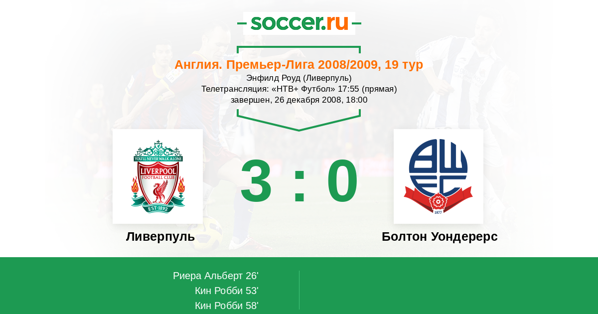 Протокол матча Ливерпуль против Болтон Уондерерс