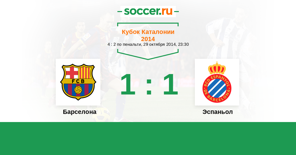 Кубок Каталонии 21.05.2014 Барселона Логотип футбольный клуб Барселона 0:0 (3:2) Логотип футбольный клуб Эспаньол (Барселона) Эспаньол