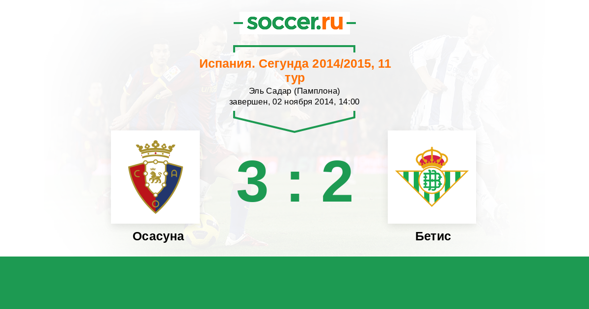 Испания. Сегунда 05.04.2015 Бетис Логотип футбольный клуб Бетис (Севилья) 3:0 Логотип футбольный клуб Осасуна (Памплона) Осасуна