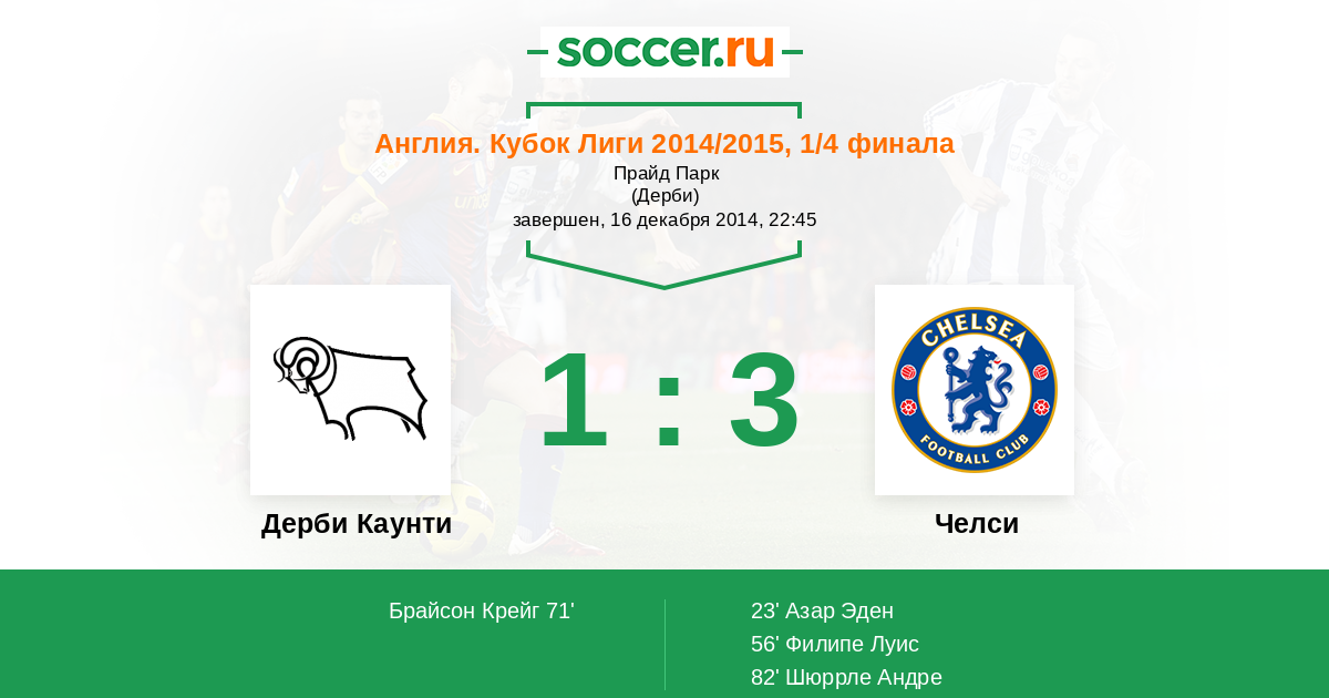 Протокол матча Дерби Каунти против Челси