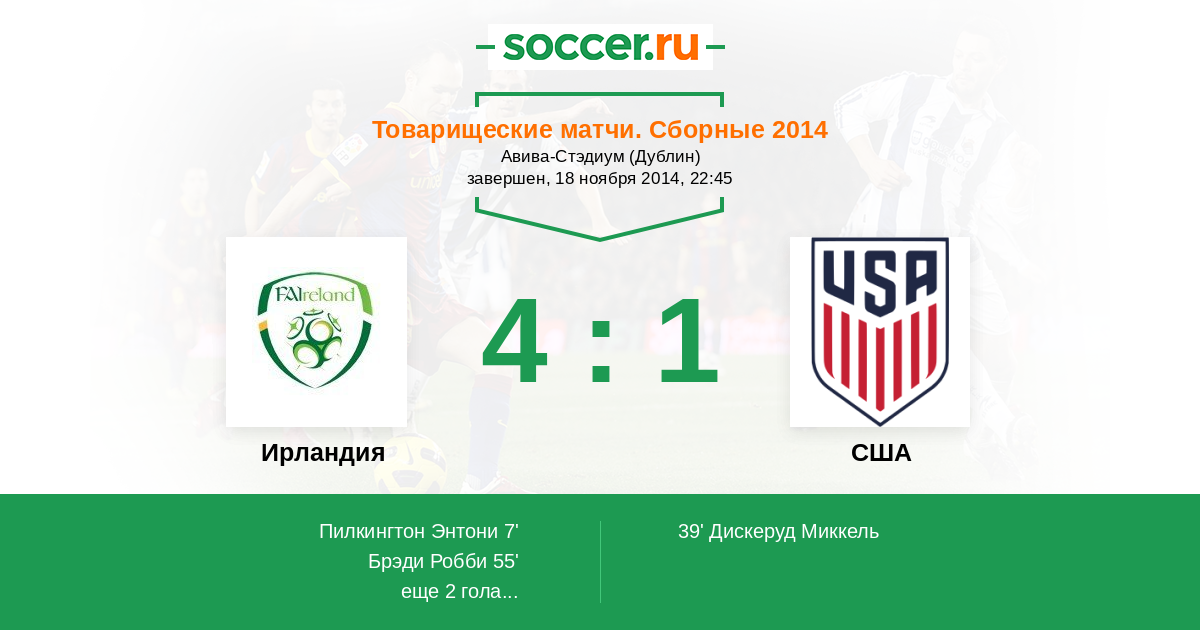 Протокол матча Ирландия против США