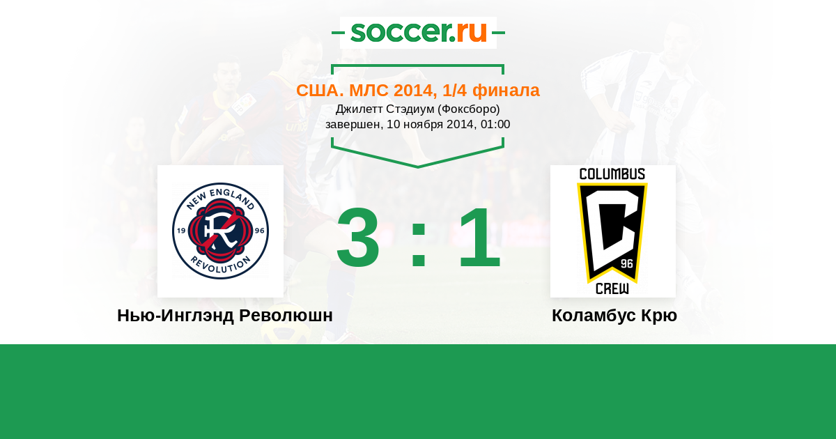 США. МЛС 27.07.2014 Нью-Инглэнд Революшн Логотип футбольный клуб Нью-Инглэнд Революшн (Фоксборо) 1:2 Логотип футбольный клуб Коламбус Крю Коламбус Крю