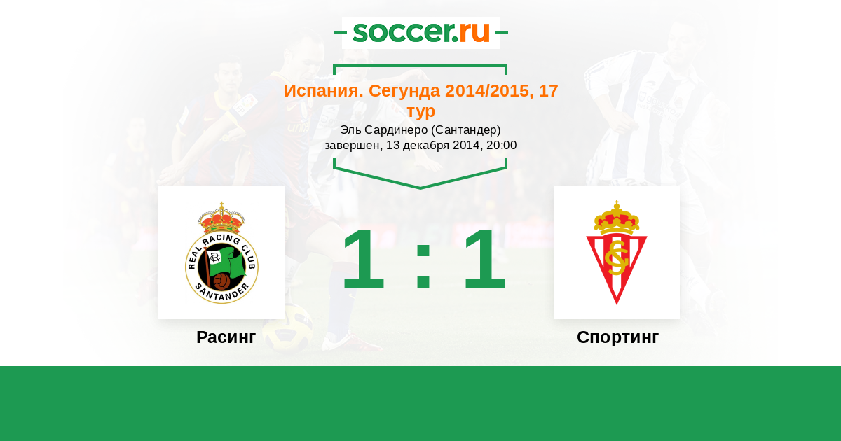 Испания. Сегунда 16.05.2015 Спортинг Логотип футбольный клуб Спортинг (Хихон) 3:1 Логотип футбольный клуб Расинг (Сантандер) Расинг