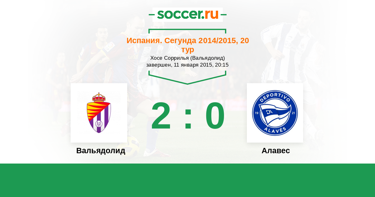 Испания. Сегунда 05.12.2015 Вальядолид Логотип футбольный клуб Вальядолид 1:2 Логотип футбольный клуб Алавес (Витория-Гастейс) Алавес