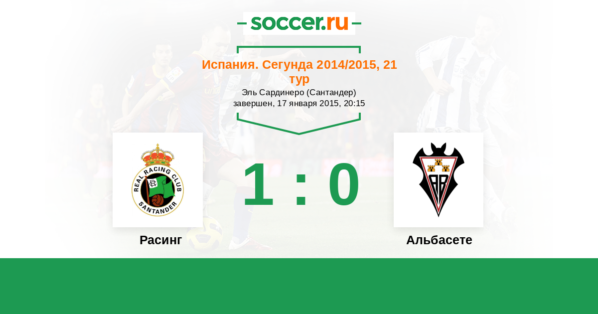 Испания. Сегунда 07.06.2015 Альбасете Логотип футбольный клуб Альбасете 0:1 Логотип футбольный клуб Расинг (Сантандер) Расинг