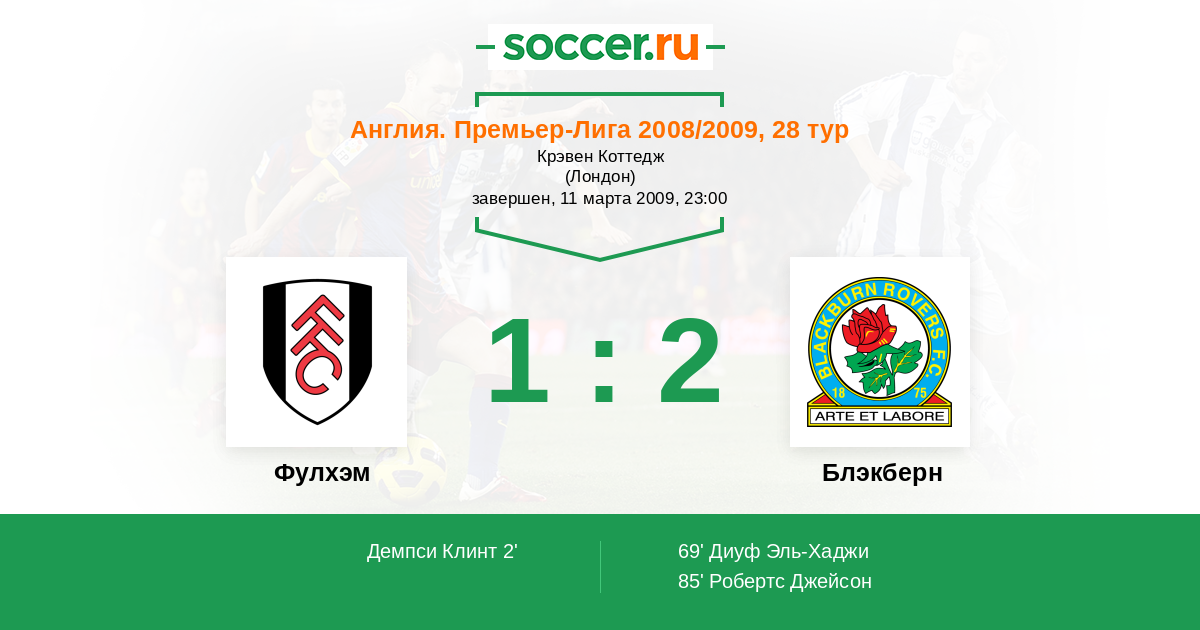 Протокол матча Фулхэм против Блэкберн