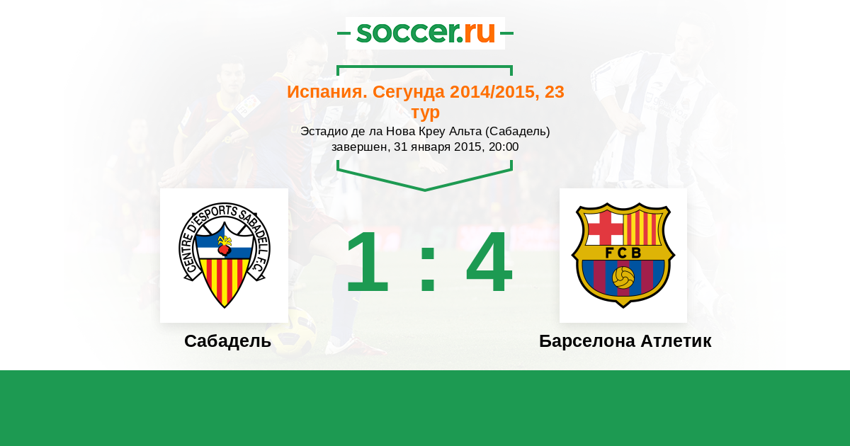 История матча Сабадель против Барселона Атлетик