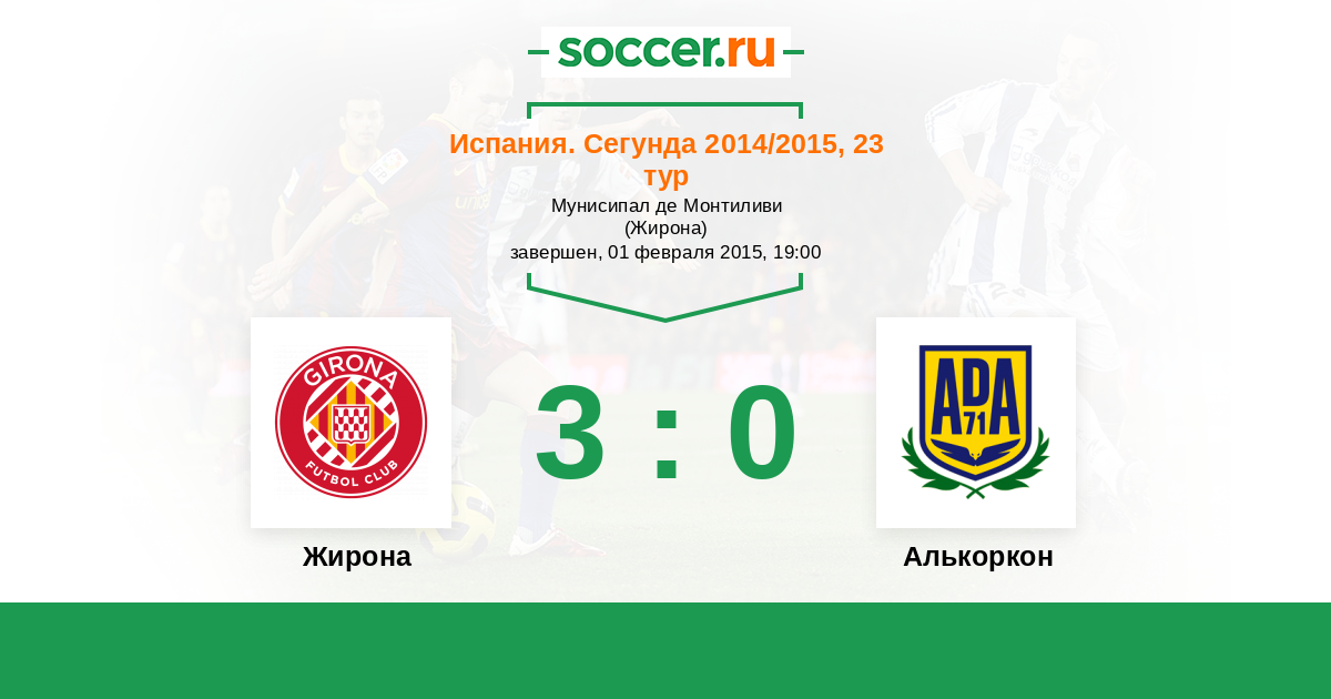 Испания. Сегунда 30.03.2014 Жирона Логотип футбольный клуб Жирона 3:1 Логотип футбольный клуб Алькоркон Алькоркон