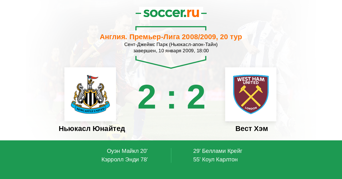 Протокол матча Ньюкасл Юнайтед против Вест Хэм