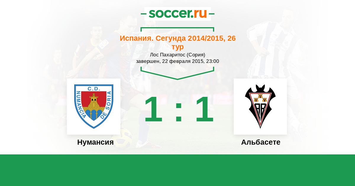 Испания. Сегунда 21.09.2014 Альбасете Логотип футбольный клуб Альбасете 0:1 Логотип футбольный клуб Нумансия (Сория) Нумансия