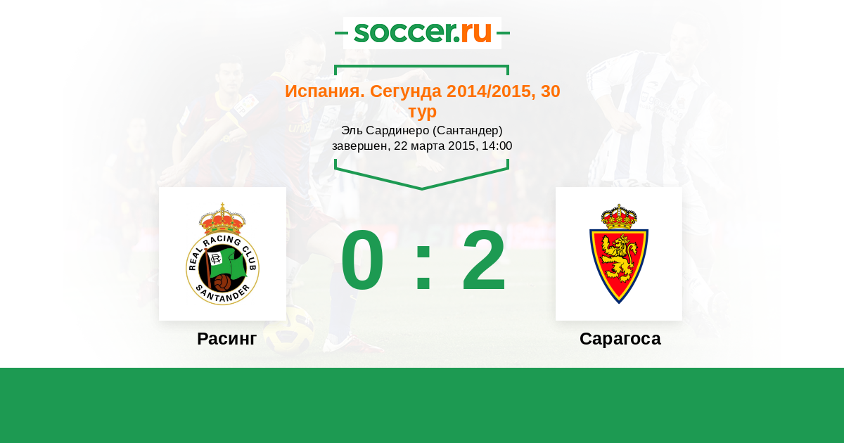 Испания. Сегунда 18.10.2014 Сарагоса Логотип футбольный клуб Сарагоса 2:1 Логотип футбольный клуб Расинг (Сантандер) Расинг