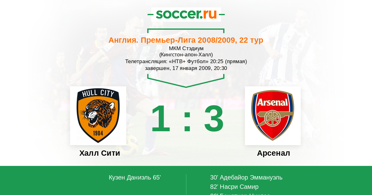 Протокол матча Халл Сити против Арсенал