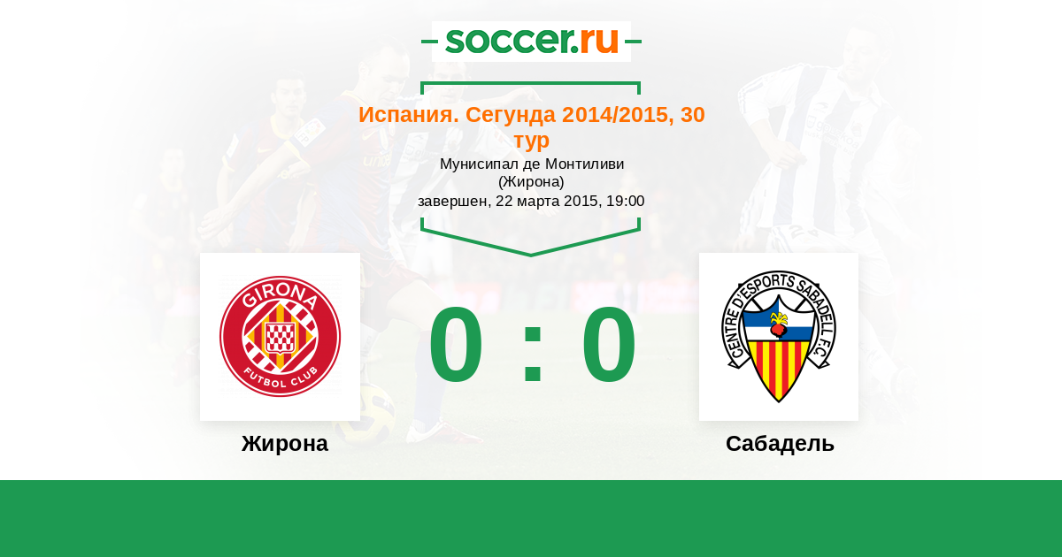 Испания. Сегунда 18.10.2014 Сабадель Логотип футбольный клуб Сабадель 0:2 Логотип футбольный клуб Жирона Жирона