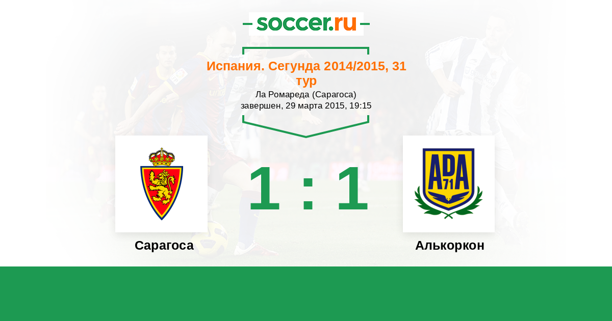 История матча Сарагоса против Алькоркон