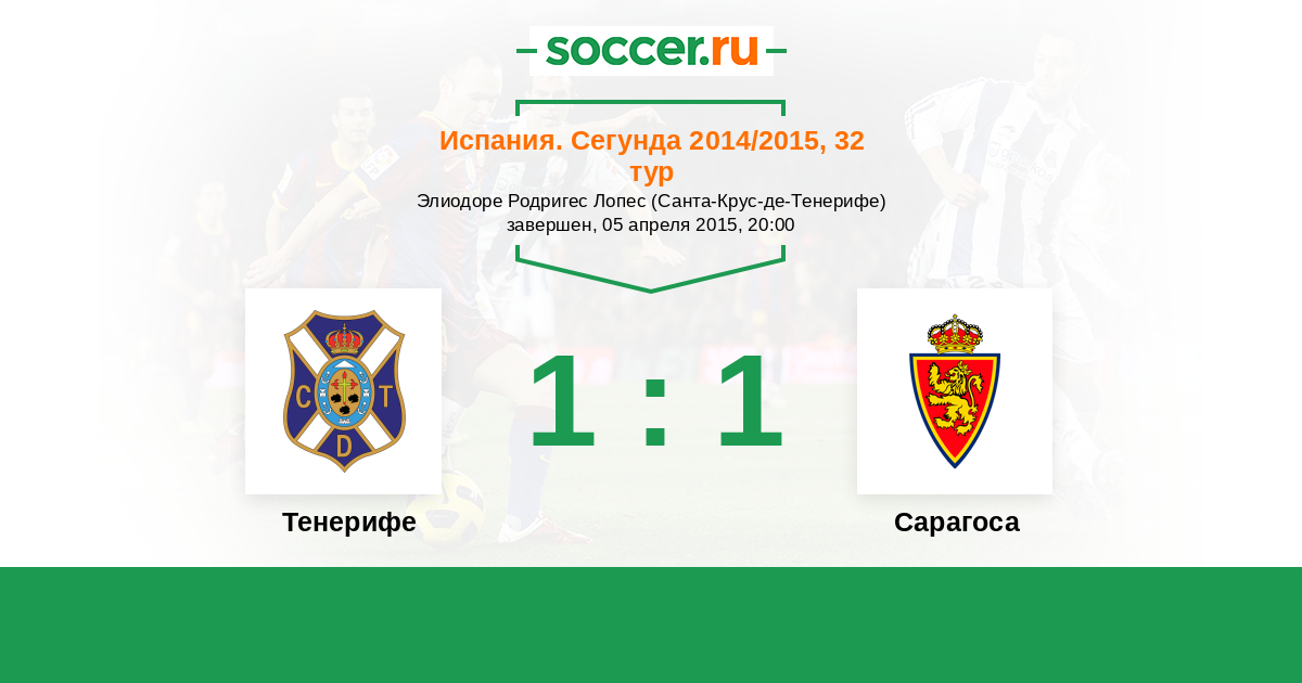 Испания. Сегунда 02.04.2022 Тенерифе Логотип футбольный клуб Тенерифе (Санта-Крус-де-Тенерифе) 1:1 Логотип футбольный клуб Сарагоса Сарагоса