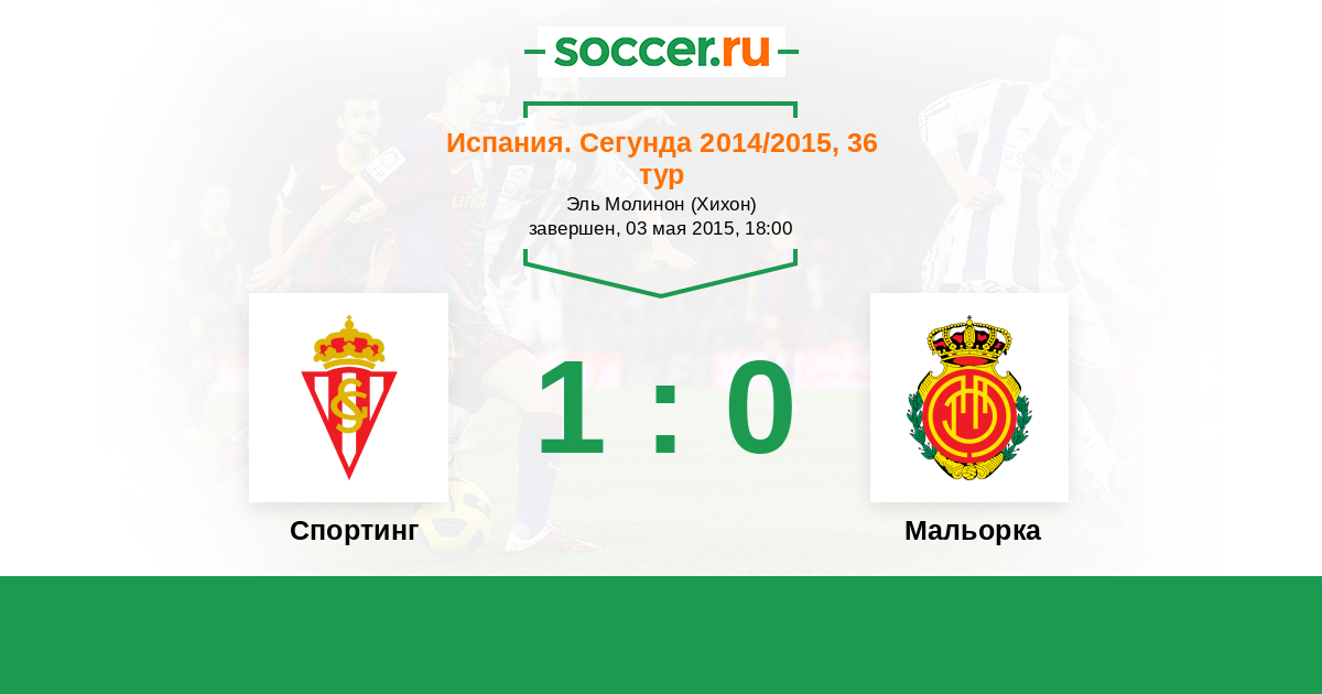Испания. Сегунда 01.09.2013 Спортинг Логотип футбольный клуб Спортинг (Хихон) 3:0 Логотип футбольный клуб Мальорка (Пальма-де-Мальорка) Мальорка
