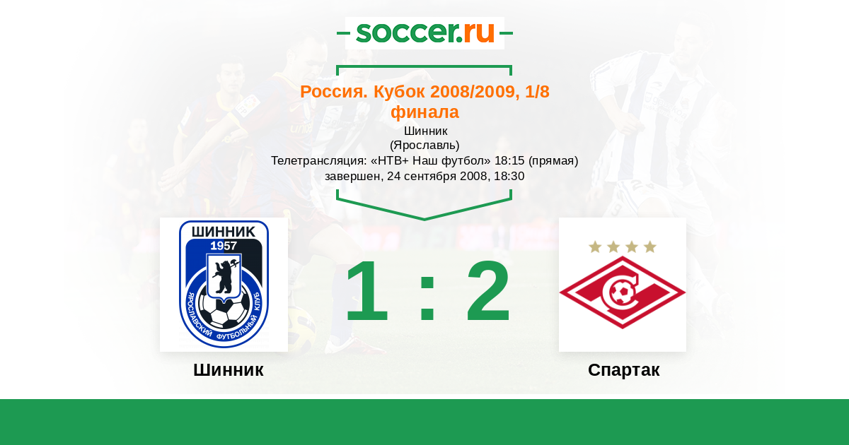 Россия. Премьер-Лига 27.09.2008 Шинник Логотип футбольный клуб Шинник (Ярославль) 1:2 Логотип футбольный клуб Спартак (Москва) Спартак