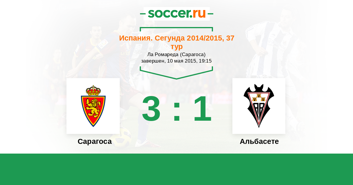 Испания. Сегунда 11.10.2015 Альбасете Логотип футбольный клуб Альбасете 1:3 Логотип футбольный клуб Сарагоса Сарагоса