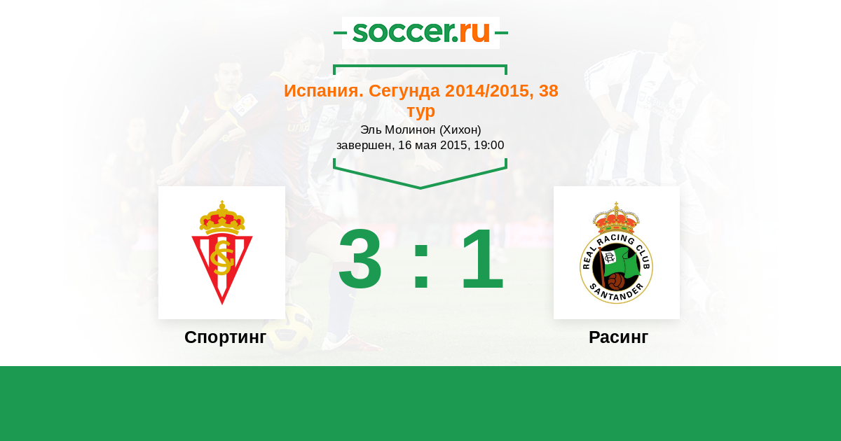 Испания. Сегунда 13.12.2014 Расинг Логотип футбольный клуб Расинг (Сантандер) 1:1 Логотип футбольный клуб Спортинг (Хихон) Спортинг