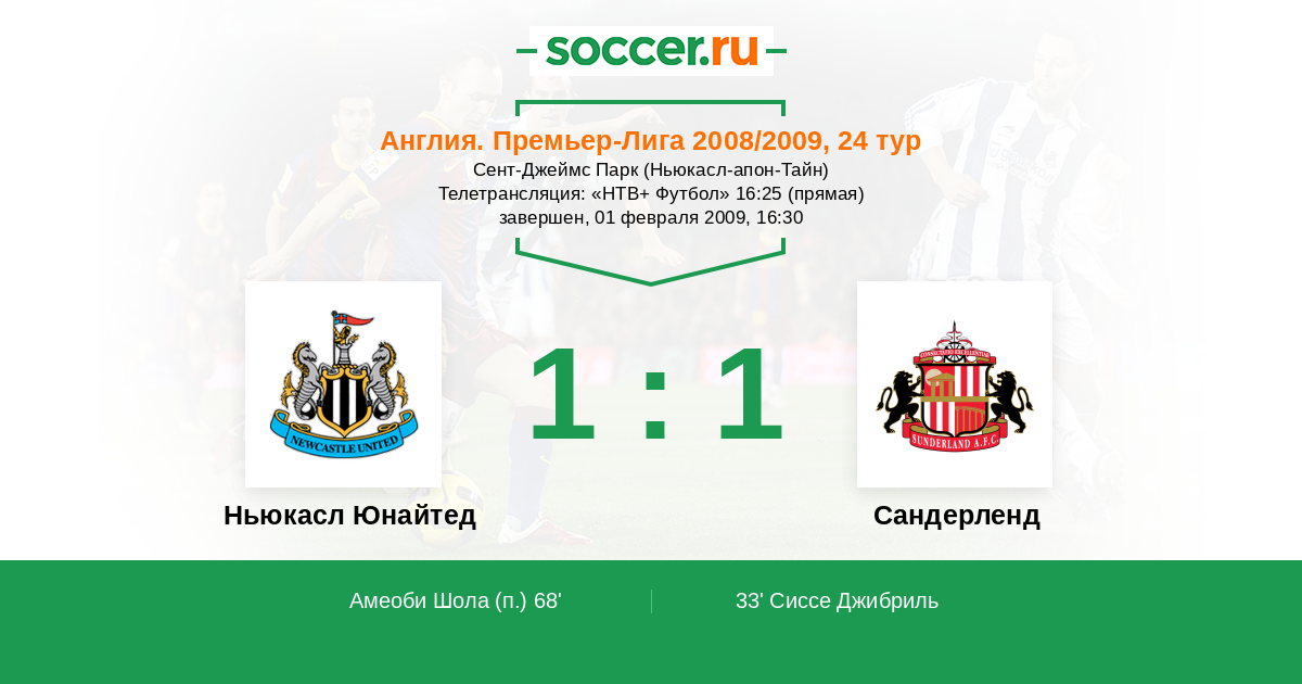 Протокол матча Ньюкасл Юнайтед против Сандерленд