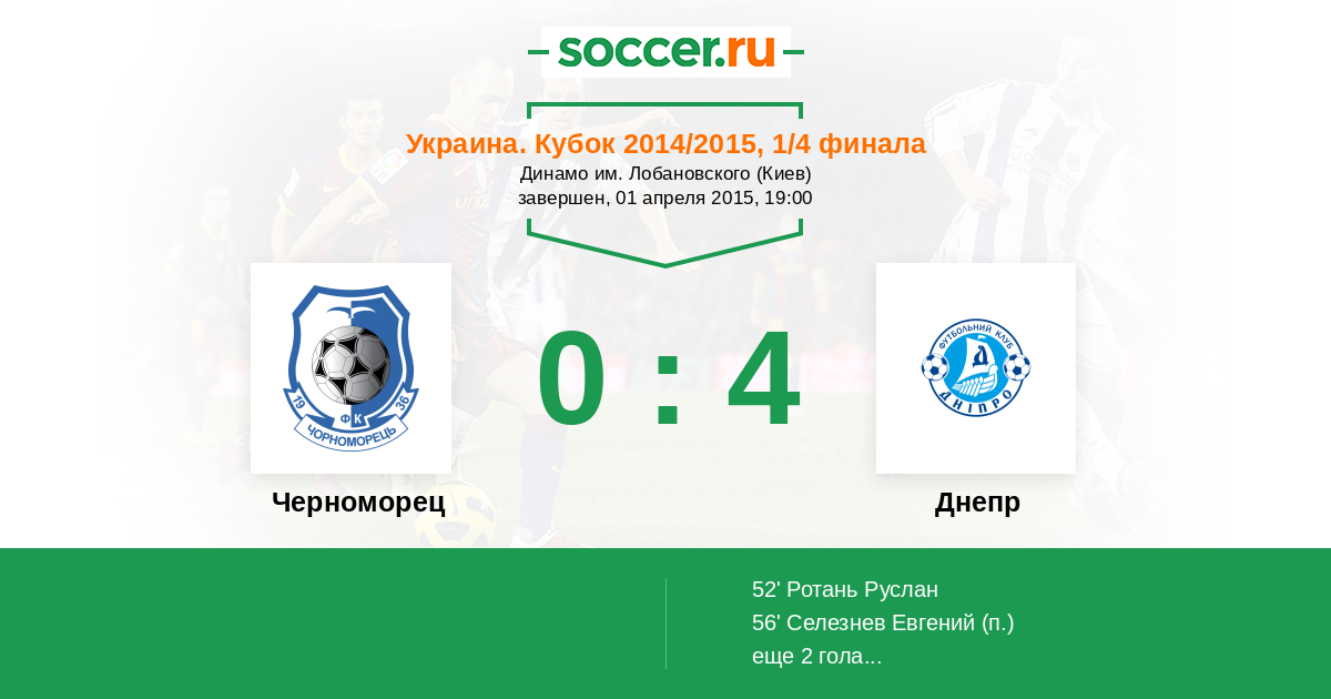 Протокол матча Черноморец против Днепр