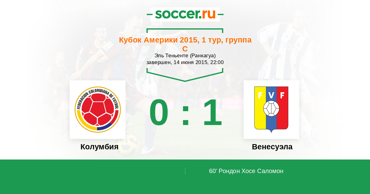 60' (0:1) Рондон Хосе Саломон (9) (Гуэрра Алехандро (15))