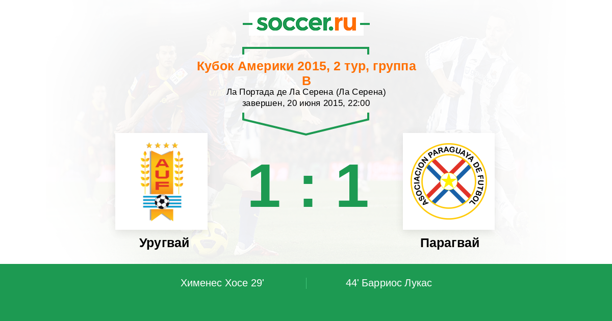 44' (1:1) Барриос Лукас (8) (Бенитес Эдгар (11))